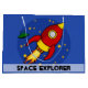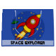 Illustration of a cute rocket in outer space, surrounded by stars, and a small green UFO spaceship. Perfect for kids or fun-loving adults. More fun rockets can be found at: