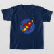 Illustration of cute rocket in outer space, surrounded by stars and a small green spaceship. Also matches the: