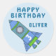 Rocket Ship Blue Kids Boy Happy Birthday Classic Round Sticker