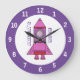 Rocket Ship Purple Space Wall Clock with Name