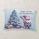 A very beautiful accent pillow of a cool Santa Claus dressed as a rock guitarist with text "Rockin' Around the Christmas Tree" and a huge tree of gifts.