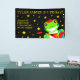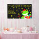 Celebrate your child's first birthdays with this whimsical banner, which features a cute tree frog with flaming red spiked hair, rocking a red guitar on a starry black background!