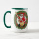 Cute Santa with electric guitar is set on a green holly wreath with candy canes.