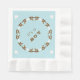 Paper napkins for a boy's baby shower. Rocking horses on blue, with "it's a boy" text is printed at an angle on white napkins