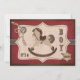 Conception rustique occidentale avec cheval à bascule, corde, badge shérif et éléments de point de selle pour une carte d'invitation baby shower.