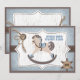 Western rustic design with rocking horse, rope, sheriff badge and saddle stitch elements for a thank you card.