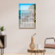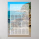 This beach design features a rocky shoreline. The picturesque setting combines greenery, blue ocean, rocky coastline and golden sand. The wording is elegantly framed with a simple white opaque border background. This is the perfect beach destination wedding design ideal for a summer or seaside wedding. Elegant and romantic beach wedding seating chart design with modern elements. Matching wedding invitations and other stationery items are also available.