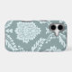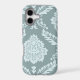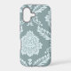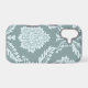 A vintage style decorative damask off-set surface pattern influenced by rococo classical design in duck egg blue color detail on a teal background.