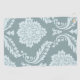 A vintage style decorative damask off-set surface pattern influenced by rococo classical design in duck egg blue color detail on a teal background.