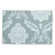 A vintage style decorative damask off-set surface pattern influenced by rococo classical design in duck egg blue color detail on a teal background.