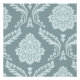 A vintage style decorative damask off-set surface pattern influenced by rococo classical design in duck egg blue color detail on a teal background.
