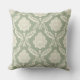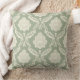Rococo Damask Big Pattern Cream on Green Throw Pillow