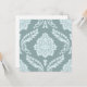 A vintage style decorative damask surface pattern influenced by rococo classical design in duck egg blue color detail on a teal background.