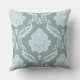 Rococo Damask Lg Pattern Duck Egg Blue+Teal Throw Pillow