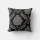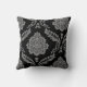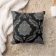 Rococo Damask Off-Set Pattern Grey on Black Throw Pillow