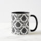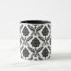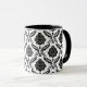 A vintage style decorative damask surface pattern influenced by rococo classical design in black detail on a white background.
