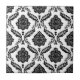 A vintage style decorative damask surface pattern influenced by rococo classical design in black detail on a white background.