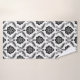 A vintage style decorative damask surface pattern influenced by rococo classical design in black and grey details on a white background.