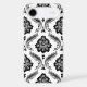 A vintage style decorative damask surface pattern influenced by rococo classical design in black and grey details on a white background.