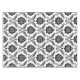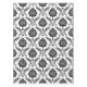 A vintage style decorative damask surface pattern influenced by rococo classical design in black and grey details on a white background.