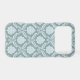 A vintage style decorative damask surface pattern influenced by rococo classical design in duck egg blue color detail on a teal background.