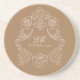 Rococo Dusty Golden Brown Wedding Logo Crest Coaster