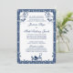 The text on this arabesque or baroque rococco pattern floral navy blue and white rounded corners wedding invitation is fully customizable. To change it use the personalize option. For more extensive changes to the invitation including changes to the font, font colour, font size, or text placement, use the customize option. This baroque rococo style wedding invitation design is suitable for a wedding in the spring or summer. Although currently customized for a wedding, this invitation would also work well for a variety of other special occasions as well. You decide. All you need to do is change the text. Change the look by trying it out on any of the other paper types. In some cases this will change the background colour. This features traditional wedding invitation wording as well. Contact the designer Wasootch if you'd like this invitation in different colours.