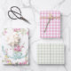 A set of 3 matte gift wrap in Rococo Roses easter colours, pink and basil green ginghams to coordinate.