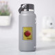 A red rocoto chili pepper is decorated with patterns inspired by the colourful textiles of Peru and sits on a yellow background with a smaller version of the same pattern and a script label in the corner. This spicy pepper is eaten in Peru and Bolivia and has been cultivated in the area since pre-Incan times.
