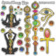 Collection d'autocollants d'énergie spirituelle par Bulgan Lumini (c) Yoga Lotus pose, Bande d'asklepius,, Sept Chacras, Oeil de Horus d'or, Ankh avec pierres précieuses colorées. Conception et modélisation 3D par Bulgan Lumini. c) Baldesign3d .Partie de la série Hyper Talismans.