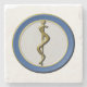 A simple design of the staff of Asclepius in gold and blue representing the medical field. Use the customize feature to add text if desired. Original vector art by Night Owl's Menagerie, 2016.