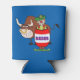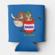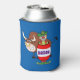 Rodeo clown inside a barrel that says RODEO and a bull behind the clown design on koozie
