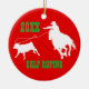 White rodeo cowboy calf roping graphic on round Christmas Ornament ... customize / personalize it with year and tag line.