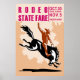 retro style illustration of a Poster showing an American Rodeo Cowboy riding a bucking bronco horse jumping viewed from side with words "Rodeo State Fair Oct. 30 to Nov. 5 join now"