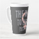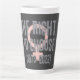 Latte mug marking the overturning of Roe v Wade by the current Supreme Court, features grunge style "The right to choose. 1973-2022" text in grey with light pink female symbol on charcoal background.