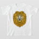 Graphique de lion avec jaune et noir, sur le T-shirt blanc du garçon.
