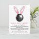 Préparez-vous à vous amuser à Pâques avec cette adorable invitation à la fête des Roulettes et des Peep! 🎳 🐥 Avec un design d'aquarelle charmant avec une boule de bowling et des oreilles de lapin, cette invitation donne le ton parfait pour une journée amusante de bowling, de chasse aux oeufs et de friandises du printemps!