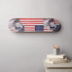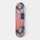 Skateboard with the design of US flag and a hand of peace,power and love.