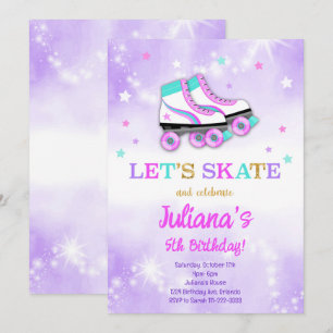 Pink Purple Roller Skate Birthday Invitation