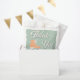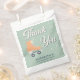 Cute sage green roller skating birthday party favour gift bags featuring "Thank You" in a 70's style script and a retro-inspired illustration of a light orange roller skate. Personalize with her name, age and party date in simple teal blue typography.