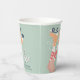 Cool sage green roller skating birthday party paper cups featuring a retro-inspired illustration of pastel orange roller skates on a girl wearing red and white striped tube socks and "Let's Roll" in a white script. Add her name dark teal blue typography.