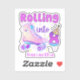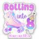 This cute and purple design features the phrase "Rolling Into 8". It is perfect for a roller skater's birthday celebration.