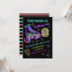 Let's Roll and glow with this neon roller skating birthday party invitations. Features neon fonts, pizza, stars and roller skates on a black background. Neon coloured bars on the back. Great for a girl or boy! All wording can be changed. To make more changes go to Personalize this template. On the bottom you’ll see “Want to customize this design even further? Click on the EDIT using Design tool. From there you can change some of the fonts & some colours, move things around or delete what you need.