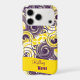 Here to personalize, is your curly and colourful case adorned with a broken purple and white spiral digital art design over a deep yellow background. Fill in the template field with your information, remove unwanted text and text ribbon or click "Customize it!" to change the font style, size, and colour.