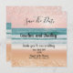 Annoncez votre jour spécial avec cette élégante carte Save the Date sur le thème de la plage. Avec un design inspiré de l'océan et accentué de paillettes roses en haut et en bas, cette carte donne le ton parfait pour une cérémonie côtière ou un mariage à destination. Les paillettes roses scintillantes ajoutent une touche de glamour et de sophistication, ce qui la rend idéale pour ceux qui rêvent d'un mariage au bord de la mer. Une citation sincère au dos ajoute une touche personnelle, garantissant que vos invités réservent la date pour votre célébration enchanteresse au bord de l'océan.