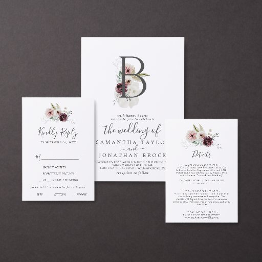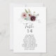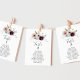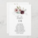Ces cartes de sièges à tableau de couleur florale sont parfaites pour un mariage élégant. Le design boho rustique moderne présente des fleurs d'aquarelle romantiques dans des tons doux de bordeaux, mauve, rose rousse et blanc crème avec des feuilles verts. La carte s'imprime à l'avant et à l'arrière (double face).