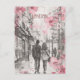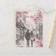 This travel postcard, in sketch illustration style, showcases a couple walking romantically in the streets of London. It is a great postcard to celebrate anniversaries for relations started in London, United Kingdom.