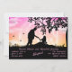 Romantic silhouette of a couple under a tree with a full moon in the background and a few butterflies. The background is a starry, cloudy pink and orange sky. Great for an elopement announcement or engagement party.