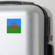 This design features the Romani flag, which is the international flag of the Romani people. The flag consists of a background of blue and green, representing the heavens and earth, respectively; it also contains a 16-spoke red chakra, or cartwheel, in the centre, which represents the itinerant tradition of the Romani people and is also an homage to the flag of India. The flag was approved by the representatives of various Romani communities at the first World Romani Congress (WRC), held in Orpington in 1971.