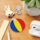 The flag of Romania has been deftly fitted to the circular fob of this keychain. A handy reminder of Romanian heritage.